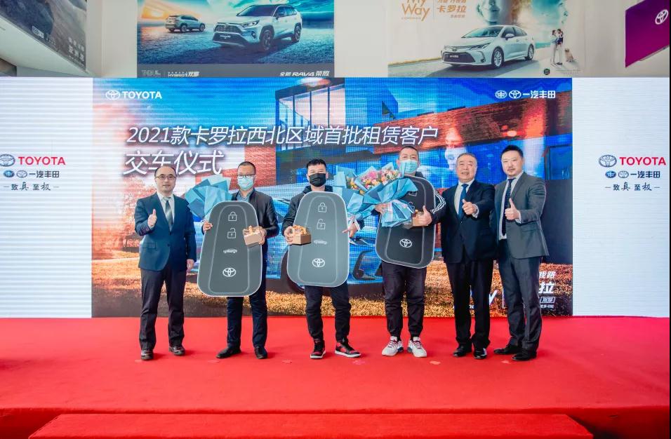 2021年3月12日,一汽豐田2021款卡羅拉交車儀式在烏魯木齊華通豐田4S店隆重舉行。本次交車儀式上,一汽豐田向烏魯木齊悟空行汽車服務(wù)有限公司、新疆悅馳汽車服務(wù)有限公司、西部暢行貿(mào)易有限公司一次性交付30臺2021款卡羅拉,該批次車輛將用于三家企業(yè)開展當(dāng)?shù)仄囎赓U、旅游、運(yùn)營業(yè)務(wù)。
