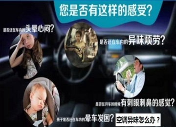 汽車空調(diào)在運(yùn)行中,空氣中80%的微小粉塵和細(xì)菌穿過過濾網(wǎng)進(jìn)入空調(diào)內(nèi)部,與冷凝水粘合后堵塞在蒸發(fā)器上,影響空調(diào)的制冷與散熱。由于蒸發(fā)箱和通風(fēng)管道的潮濕環(huán)境和表面的灰塵為霉菌和真菌的滋生提供了溫床,產(chǎn)生物體腐爛性異味,這些異味會(huì)隨著空調(diào)的打開,污染整個(gè)車廂內(nèi)部,被吸到人體內(nèi),會(huì)導(dǎo)致“汽車空調(diào)病”。